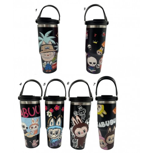 • ✦4TB-4054 TERMO DE ACERO INOXIDABLE LABUBU NEGRO 900ML